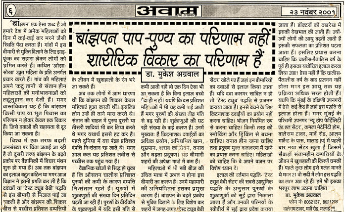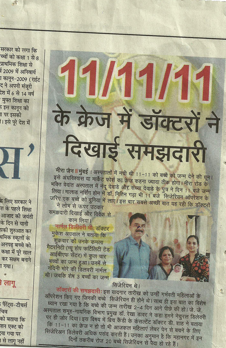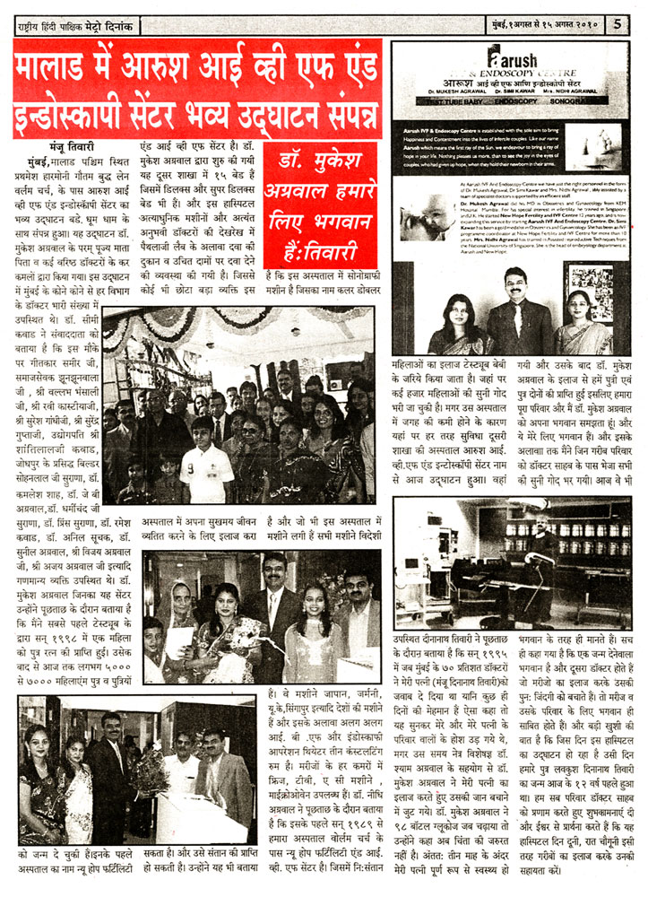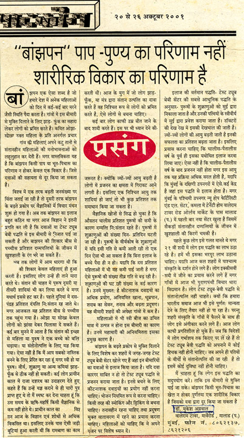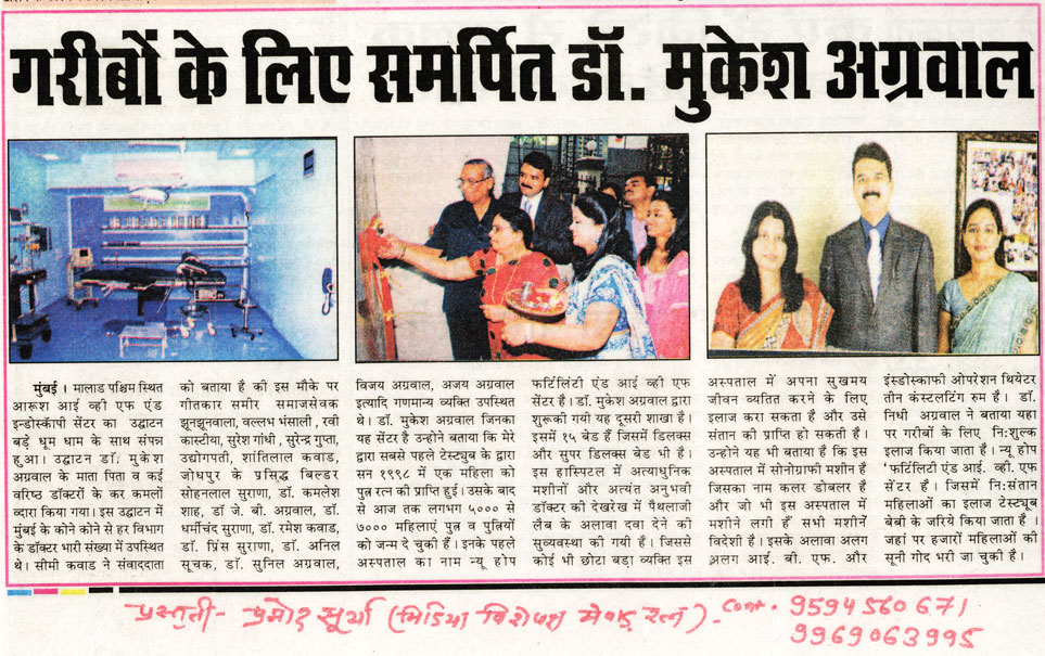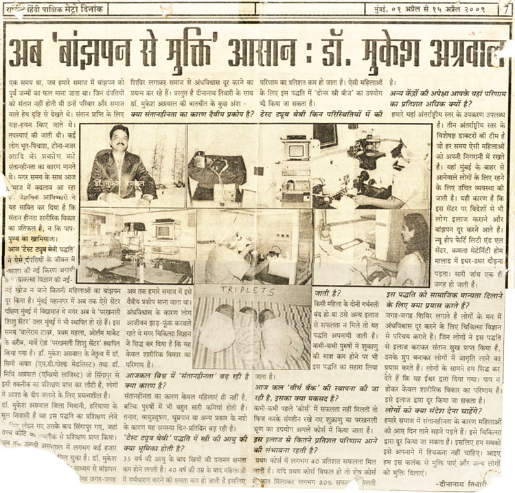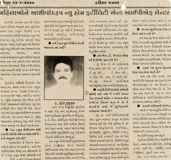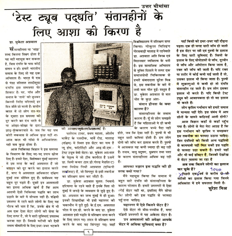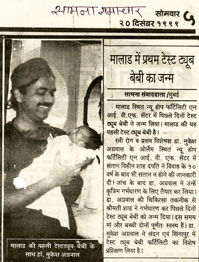 Dr. Mukesh Agrawal & Dr. Simi Kawar have the credit of delivering first test tube baby of western suburb of Mumbai.In last twenty yrs of infertility practice,